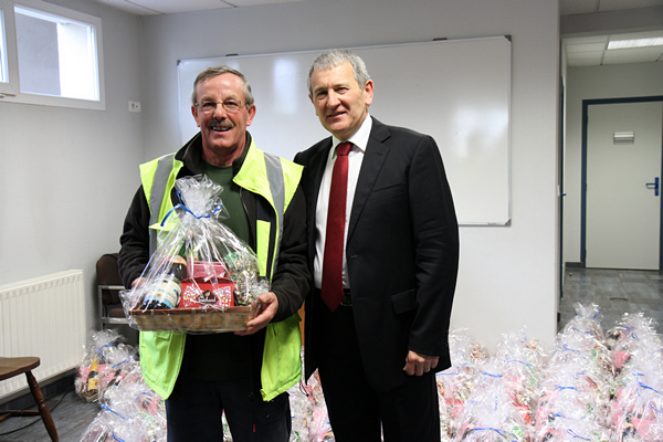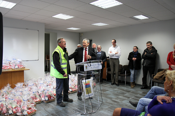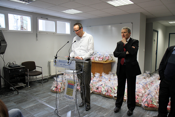 Après que le Maire ait fait part de ses bons voeux à l'ensemble du personnel, chaque agent s’est vu offrir un panier garni.