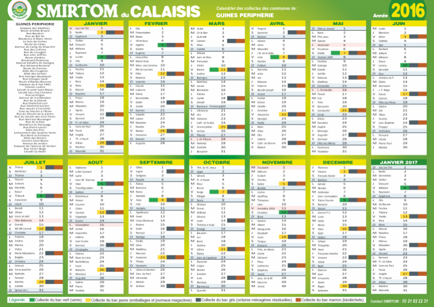 Beaucoup d'entre vous n'ont pas reçu le calendrier 2016 des collectes des ordures ménagères par le SMIRTOM.