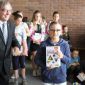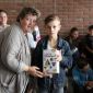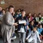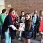 Les 62 élèves de CM2 fiers de montrer leur dictionnaire.
