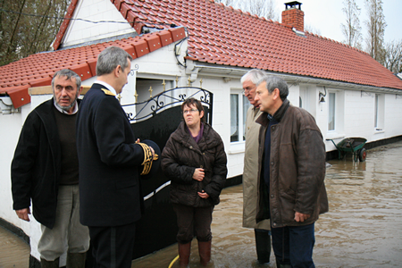 Le Ministre, le Préfet et le Sous Préfet, accompagnés du Maire, Marc Médine et de Hervé Poher, Vice Président du Conseil Général ont apporté leur soutien aux sinistrés. Le Ministre Frédéric Cuvillier a assuré que les inondations seraient classées en catastrophe naturelle.