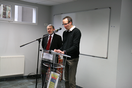 En cette traditionnelle cérémonie des vœux au personnel communal, Marc Médine, maire de Guînes, au côté de Thibault Claisse, directeur général des services, recevait le vendredi 11 janvier 2013 à 15h00 dans la salle du rez-de-jardin de la mairie, tous les employés municipaux et conseillers municipaux. Après les mots de bienvenue du maire, il laissa la parole à Mr Claisse qui s'adressa à ses collègues : “ J'ai souhaité pour l’année 2012, une gestion plus collective, plus transversale entre les services municipaux pour une meilleure cohérence des moyens et leur optimisation ; plus à l'écoute des uns et des autres dans un dialogue qui doit être respectueux et constructif. Cette année 2012, m'a prouvé que je pouvais compter sur la quasi-totalité du personnel. L'impression que je ressens, en tant que Directeur Général des Services de la mairie, est une impression de mouvement et de dynamisme mais aussi de construction et d'échange…“