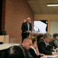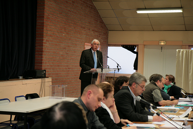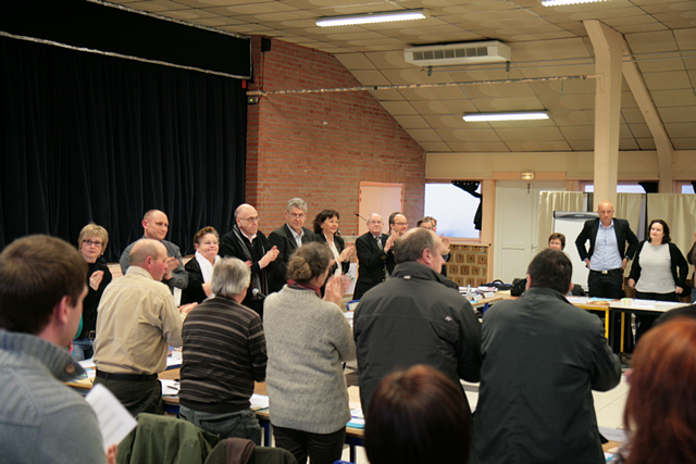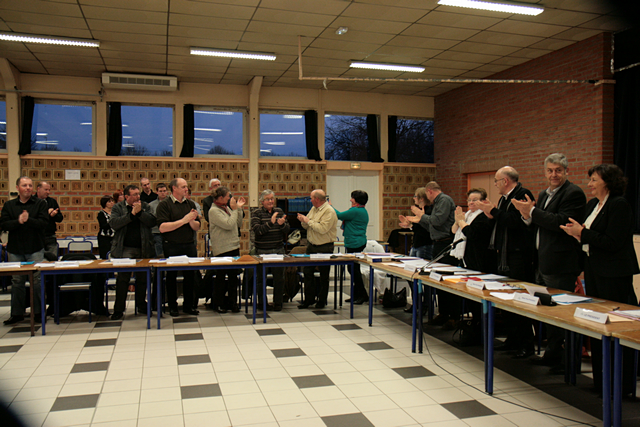 Après 16 années passées à la tête de la Communauté de Communes des Trois Pays, instance dont il est le fondateur, Mr Hervé Poher, Sénateur depuis le 1er mars dernier, a été dans l’obligation de quitter son poste de Président, pour respecter la règle du cumul des mandats. Pour lui succéder, les Conseillers Communautaires ont élu à une très large majorité Mr Marc Médine, Maire de Guînes, ce jeudi 4 avril. Le nouveau Président a tenu à saluer comme il se doit l’immense travail réalisé par son prédécesseur durant les 16 années passées à la tête de la Communauté de Communes des Trois-Pays. A travers un discours chargé d’émotions et ponctué d’anecdotes, M. Médine est revenu sur les projets réalisés et les nombreux services à la population mis en place sous l’impulsion de Mr Poher sur l’ensemble du territoire de la Communauté de Communes. Cette séance a également permis de réélire les 7 vice-présidents sortants, qui, comme le souhaitait le nouveau Président, Marc Médine, soucieux de préserver l’équilibre et la continuité des travaux réalisés depuis 2008, ont été reconduits dans leur fonction.