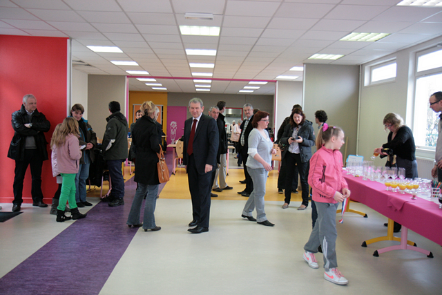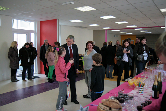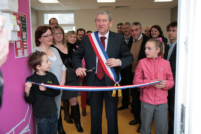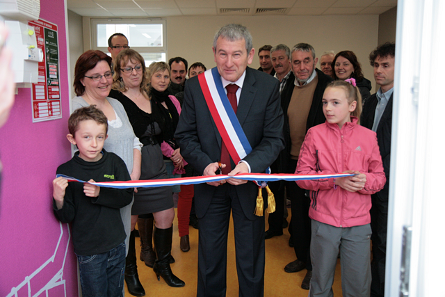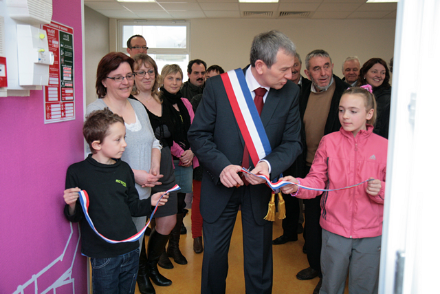 Marc Médine, Maire de la ville, était présent et a coupé le traditionnel ruban tricolore tenu par deux élèves de CM2, à ses côtés.